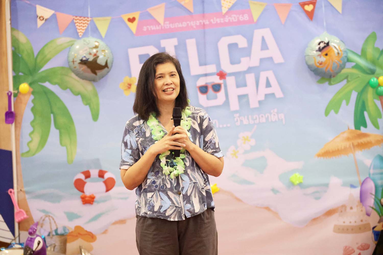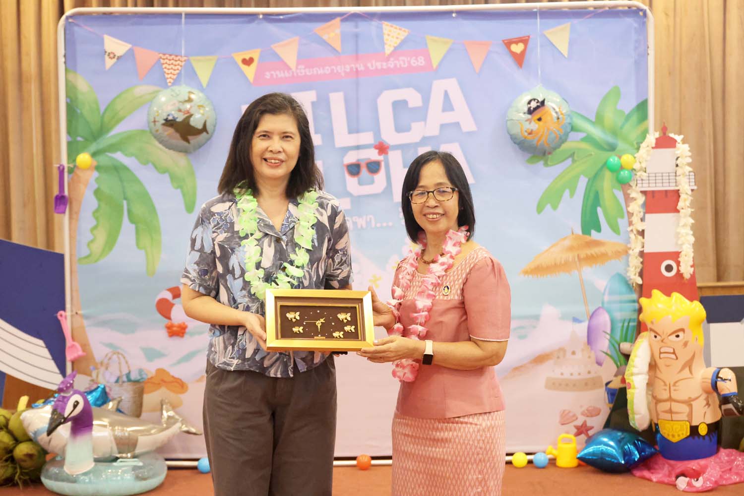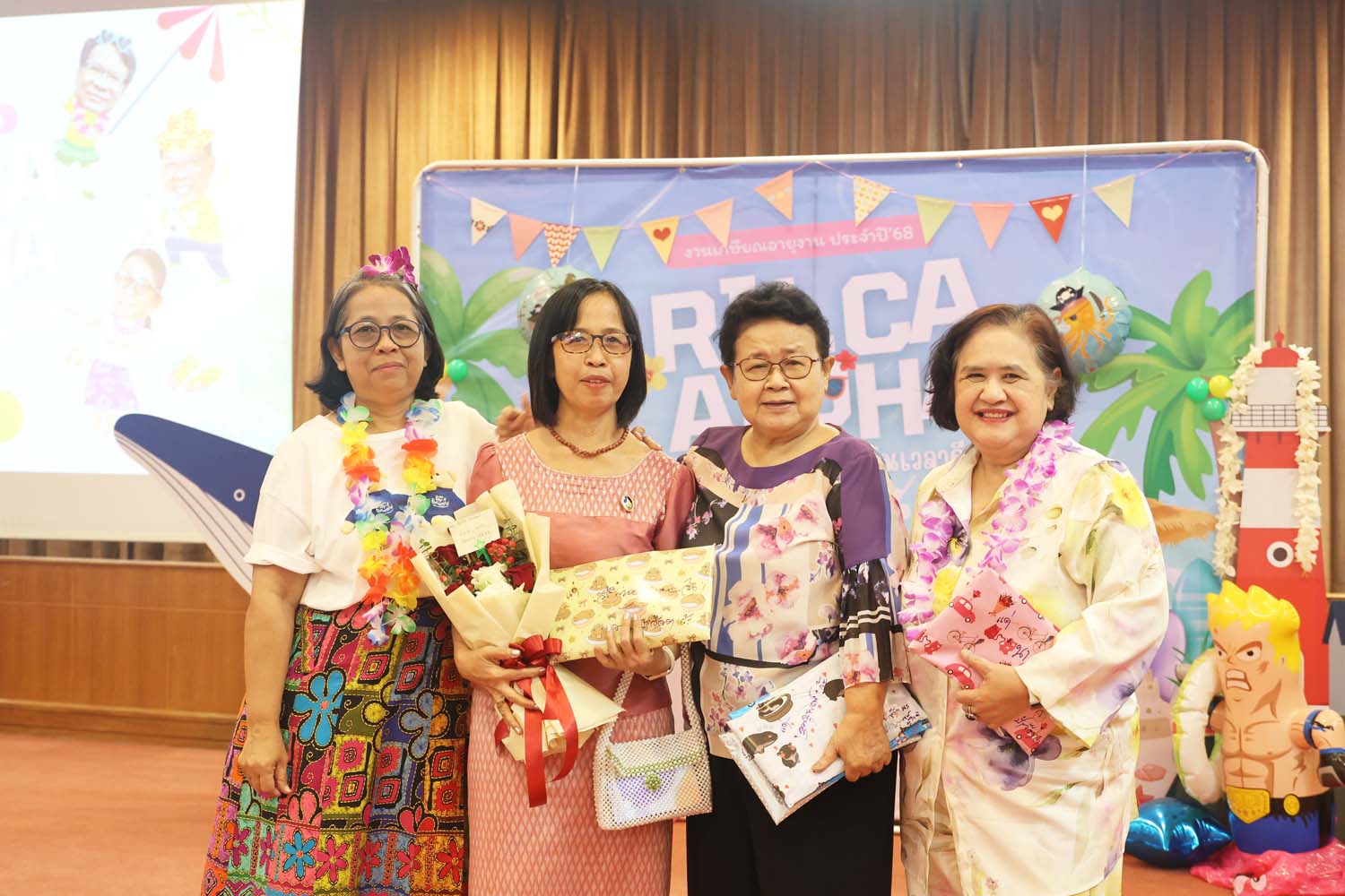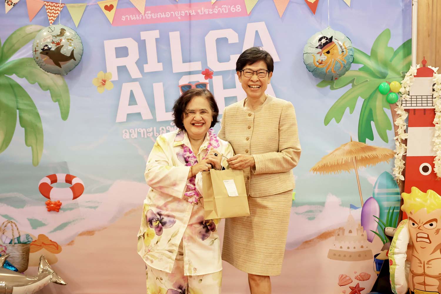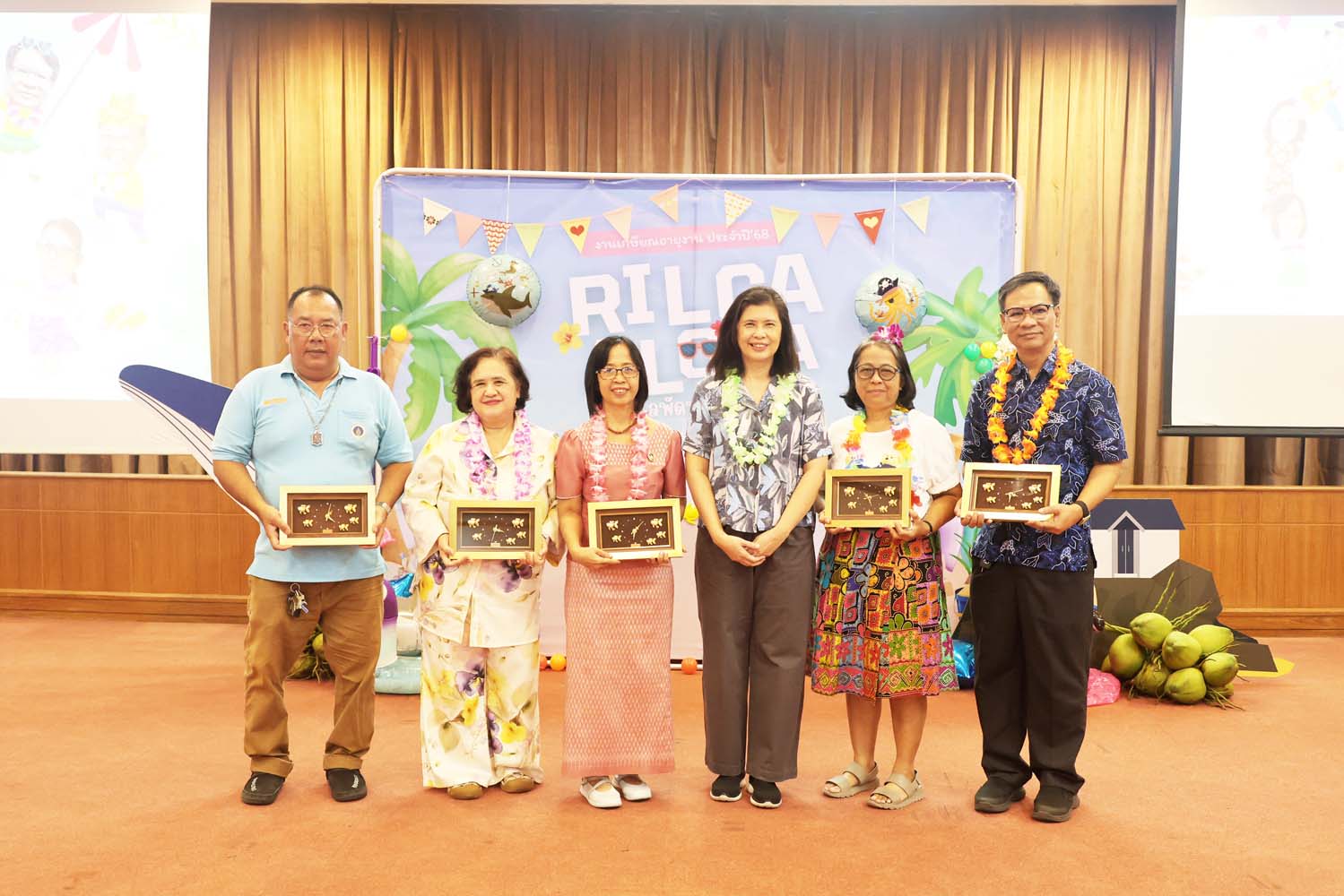 On September 26, 2025, The Research Institute for Languages and Cultures of Asia (RILCA) held its 2025 retirement ceremony under the theme “Aloha Hawaii”, at the Multi-Purpose Meeting Room, 2nd Floor. Assoc. Prof. Dr. Nuntiya Doungphummes, Director of the Institute, expressed her gratitude and presented commemorative gifts to the retirees, honoring their dedication, hard work, and perseverance throughout their careers until retirement.