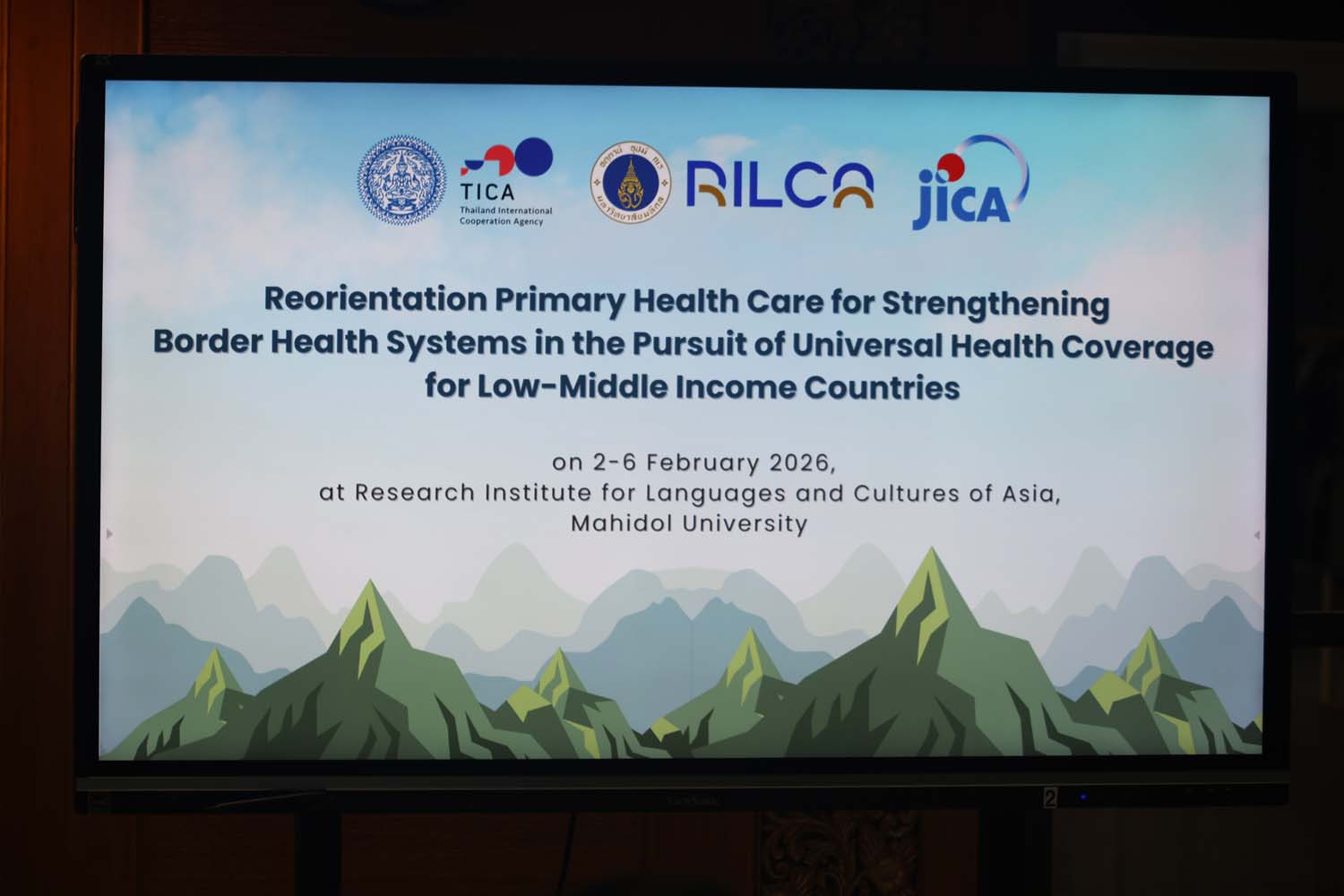 สถาบันวิจัยภาษาและวัฒนธรรมเอเชีย (RILCA) ร่วมกับ กรมความร่วมมือระหว่างประเทศ (Thailand International Cooperation Agency: TICA) และองค์การความร่วมมือระหว่างประเทศแห่งญี่ปุ่น (Japan International Cooperation Agency: JICA) จัดหลักสูตร “Reorientation Primary Health Care for Strengthening Border Health Systems in the Pursuit of Universal Health Coverage for Low-Middle Income Countries” ภายใต้การสนับสนุนทุนวิจัยหลักจาก JICA ในวันที่ 2 กุมภาพันธ์ 2569 ณ ห้องพฤฒปัญญา ชั้น 1 สถาบันวิจัยภาษาและวัฒนธรรมเอเชีย มหาวิทยาลัยมหิดล ศาลายา เพื่อเสริมสร้างศักยภาพระบบสุขภาพชายแดนและผลักดันการบรรลุเป้าหมายหลักประกันสุขภาพถ้วนหน้า (Universal Health Coverage: UHC)