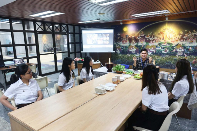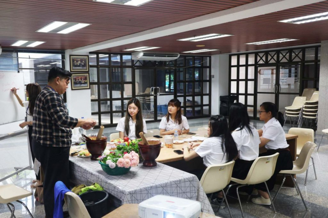 Following the welcome ceremony, the students took part in a hands-on som tam (Thai papaya salad) cooking activity, guided by cultural expert Mr. Anurak Danchan. The activity offered a practical introduction to Thai culture. Afterwards, they joined a campus tour of Mahidol University to explore the environment and facilities, helping them feel more at ease and prepared for the training program ahead.