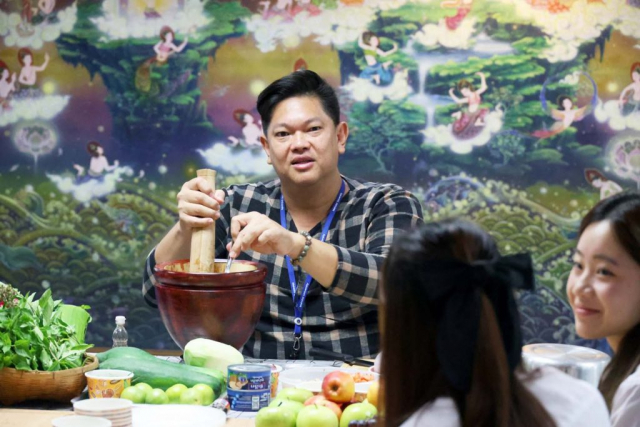หลังจากการต้อนรับ นักศึกษาได้เข้าร่วมกิจกรรมการสาธิตทำอาหารไทยยอดนิยมอย่าง “ส้มตำ” พร้อมให้ลงมือปฏิบัติจริง เพื่อให้เข้าใจวัฒนธรรมไทยผ่านประสบการณ์ตรง โดยมี นายอนุรักษณ์ ด้านจันทร์ นักวิชาการวัฒนธรรม เป็นวิทยากรสาธิตและให้คำแนะนำตลอดกิจกรรม จากนั้นได้ไปเยี่ยมชมภายในมหาวิทยาลัยมหิดล (Campus Tour) เพื่อเรียนรู้สภาพแวดล้อม อาคารสถานที่ และบรรยากาศของการใช้ชีวิตในรั้วมหาวิทยาลัยของไทย ซึ่งจะช่วยเสริมสร้างความคุ้นเคย และเตรียมความพร้อมสำหรับการเรียนรู้ตลอดระยะเวลาของการอบรมครั้งนี้