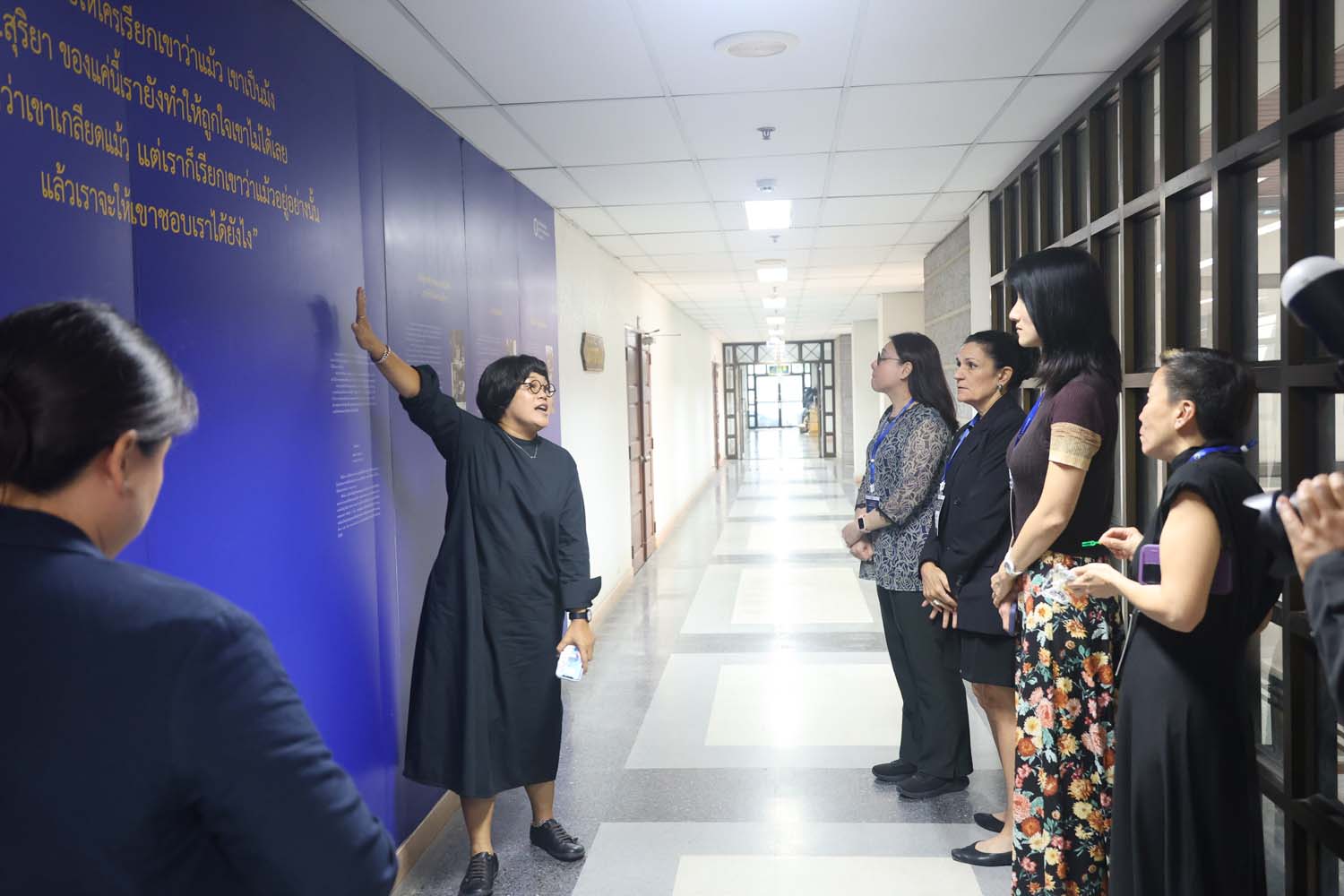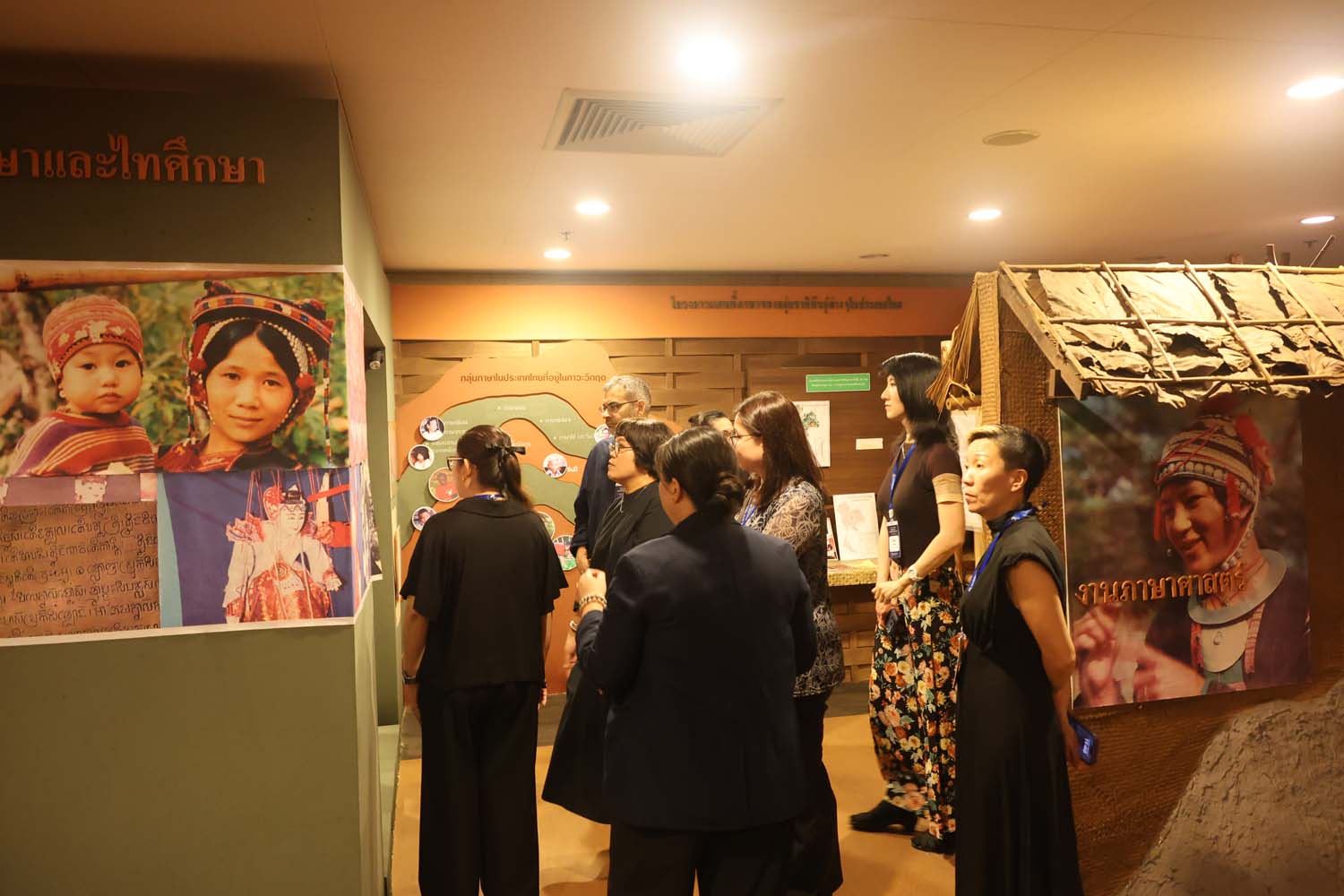 ในโอกาสนี้ ผู้ช่วยศาสตราจารย์ ดร.พธู ครูศรีพิทักษ์ ประธานหลักสูตรพิพิธภัณฑศึกษา ได้นำคณะผู้แทนเยี่ยมชมนิทรรศการพิเศษ “ชะลอไว ชะลอวัย” ซึ่งนำเสนอความรู้ความเข้าใจเกี่ยวกับภาวะสมองเสื่อมและการเตรียมพร้อมสู่สังคมสูงวัย รวมถึงพิพิธภัณฑ์มานุษยวิทยาวัฒนธรรม และนิทรรศการพิเศษเคลื่อนที่ “วิวิธชาติพันธุ์” เพื่อส่งเสริมการเรียนรู้และความเข้าใจในความหลากหลายทางภาษาและวัฒนธรรมไทย