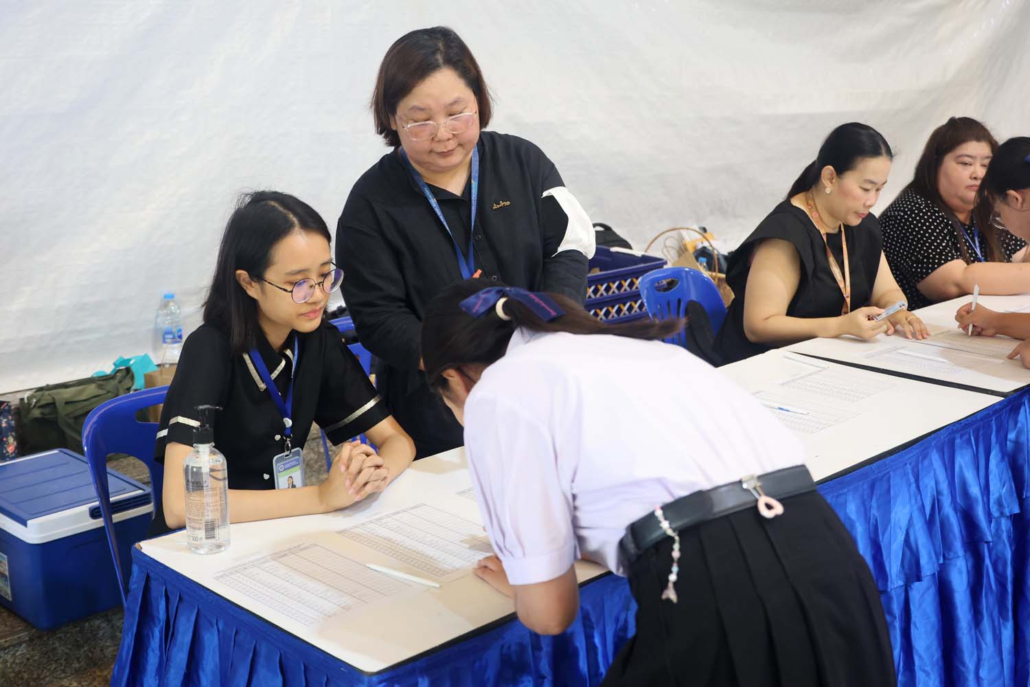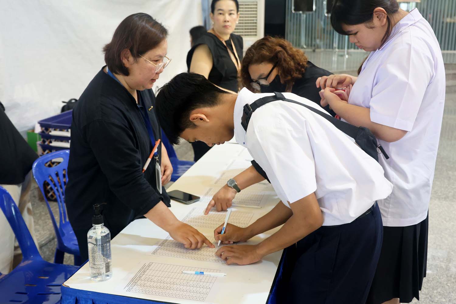 ในการนี้ ผู้ช่วยศาสตราจารย์ ดร.สราวุฒิ ไกรเสม รองผู้อำนวยการฝ่ายการศึกษาและกิจการพิเศษ ผู้ช่วยศาสตราจารย์ ดร.ปัทมา พัฒน์พงษ์ ประธานหลักสูตรปรัชญาดุษฎีบัณฑิต สาขาวิชาภาษาศาสตร์ อาจารย์ ดร.ธานินทร ลิมปิศิริ และอาจารย์ ดร.มิรินด้า บูรรุ่งโรจน์ อาจารย์ประจำหลักสูตรปรัชญาดุษฎีบัณฑิต สาขาวิชาภาษาศาสตร์ ได้ร่วมดูแลและสนับสนุนการจัดสอบ ณ สนามสอบมหาวิทยาลัยมหิดล ด้วย