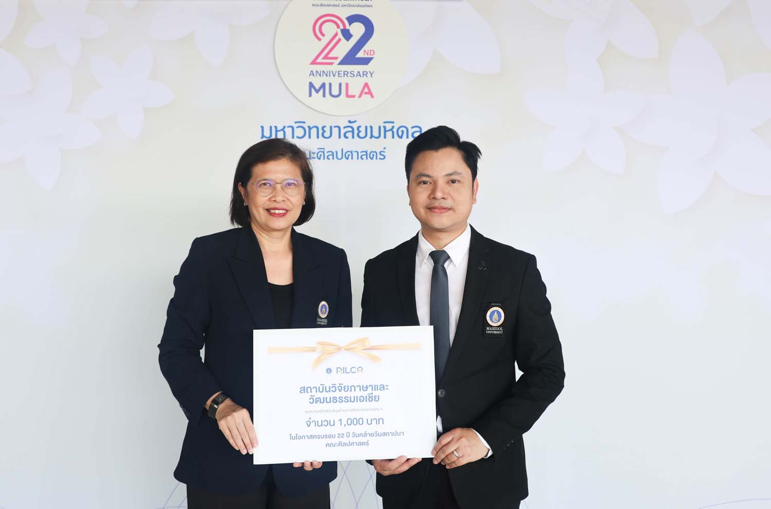 On December 17, 2025, Assoc. Prof. Dr.Nuntiya Doungphummes, Director of RILCA, and Asst. Prof. Dr.Sunida Siwapathomchai Deputy Director for Corporate Communication and Academic Services, congratulated Asst. Prof. Dr.Aphiwit Liangitsara, Dean of LA, on the occasion of the Faculty’s 22nd anniversary at Siriwitthaya Building.