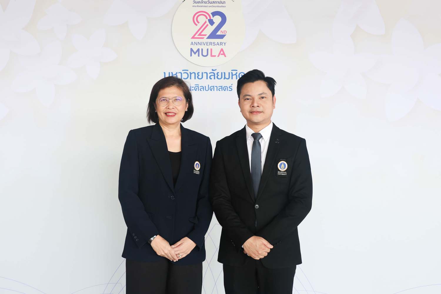 รองศาสตราจารย์ ดร.นันทิยา ดวงภุมเมศ ผู้อำนวยการสถาบันฯ ร่วมแสดงความยินดีในโอกาสครบรอบ 22 ปี วันคล้ายวันสถาปนาคณะศิลปศาสตร์ มหาวิทยาลัยมหิดล โดยมี ผู้ช่วยศาสตราจารย์ ดร.อภิวิชญ์ เลี้ยงอิสสระ คณบดีคณะศิลปศาสตร์ ให้เกียรติต้อนรับ วันที่ 17 ธันวาคม 2568 ณ อาคารสิริวิทยา