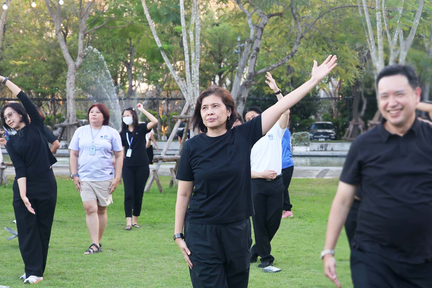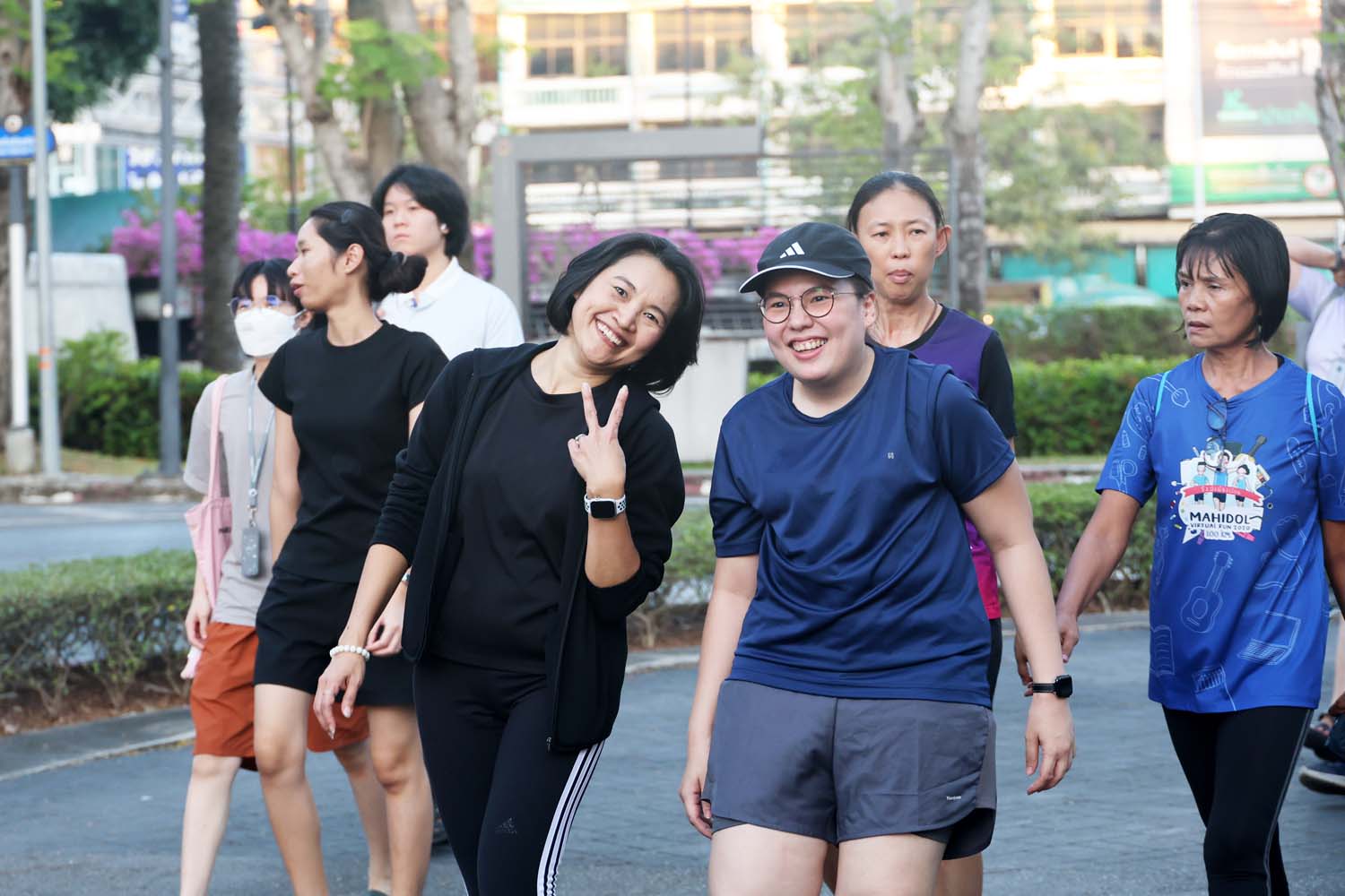 โอกาสนี้ ผู้อำนวยการสถาบันฯ ได้ร่วมรับฟังเสวนา “ตั้งวงคุยที่ลานหญ้า”ภายใต้หัวข้อ “กลับมามีชีวิตกับผืนดิน” ซึ่งเป็นเวทีแลกเปลี่ยนมุมมองด้านนโยบายและการดำเนินงานเพื่อส่งเสริมและผลักดันการสร้างสุขภาวะที่ดีให้กับบุคลากรและนักศึกษาอย่างรอบด้าน พร้อมทั้งเข้าร่วมกิจกรรมสร้างเสริมสุขภาพ 2 กิจกรรม ได้แก่ กิจกรรม “การยืดเหยียดและยืดเส้น” ไปพร้อมกับเสียงดนตรีบรรเลง ที่สร้างบรรยากาศการดูแลสุขภาพอย่างเป็นมิตรและเข้าถึงง่าย และกิจกรรม “แค่เดินก็เบิร์นแล้ว” ครั้งที่ 3 การร่วมเดินออกกำลังกายไปพร้อมกับผู้บริหารมหาวิทยาลัย ผู้บริหารส่วนงาน นักศึกษา และบุคลากร ภายในพื้นที่มหาวิทยาลัยมหิดล ศาลายา ส่งเสริมการเคลื่อนไหวร่างกายอย่างต่อเนื่อง พร้อมสร้างความสัมพันธ์ที่ดีระหว่างผู้เข้าร่วม