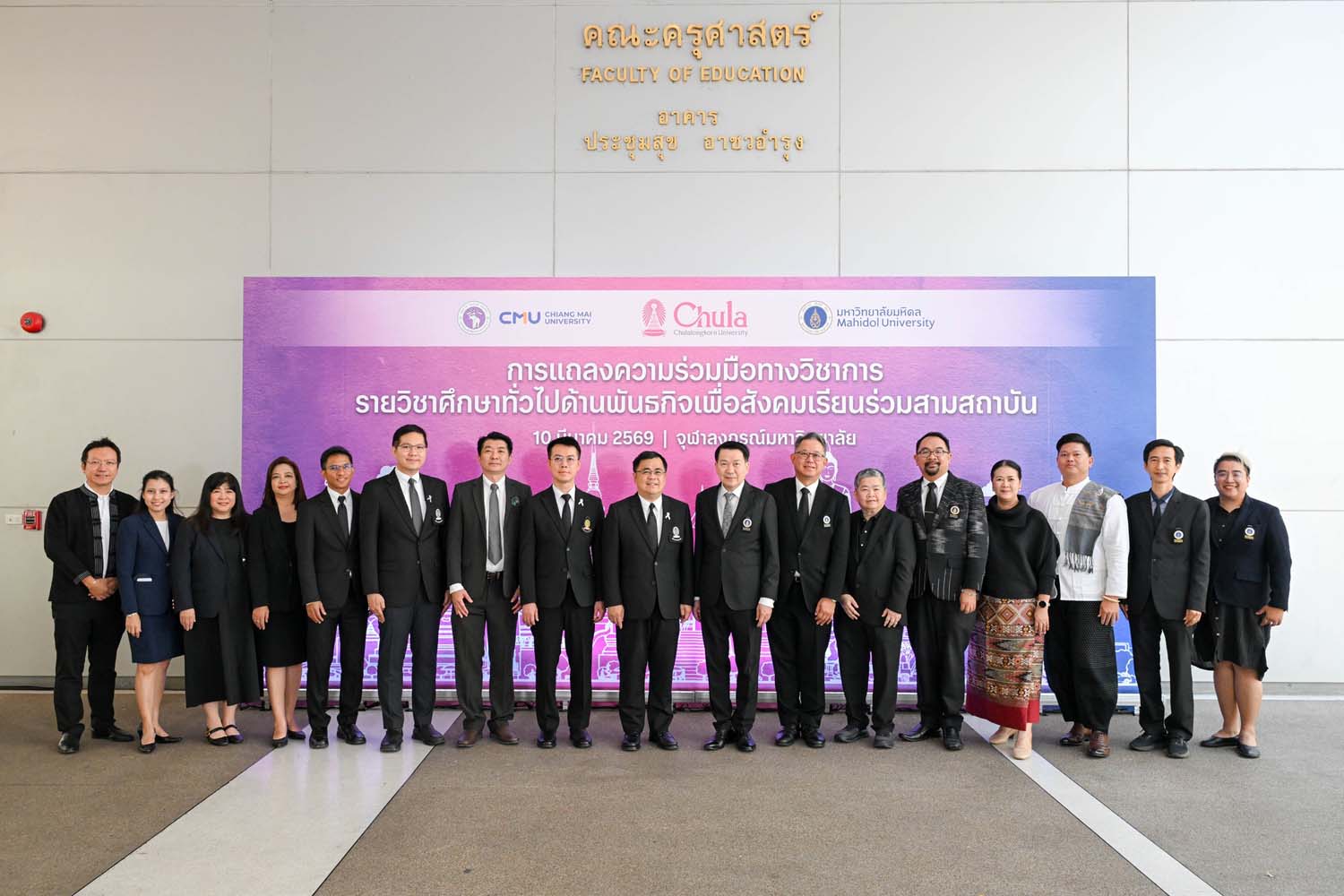 Asst. Prof. Dr.Yuttaporn Naksuk and Mr.Anurak Karnchan from the Research Institute for Languages and Cultures of Asia (RILCA), Mahidol University, participated in the announcement of a joint General Education course collaboration between Mahidol University and Chulalongkorn University under the “Khati Chon Nan Project” on March 10, 2026, at the Faculty of Education, Chulalongkorn University.
