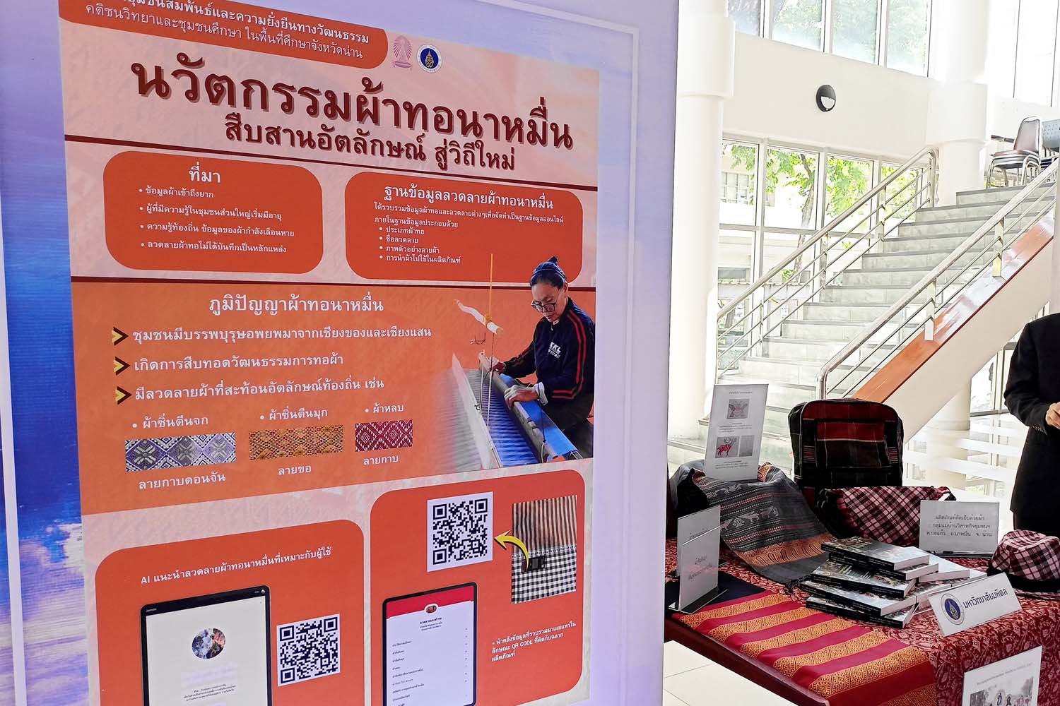 ในโอกาสนี้ สถาบันวิจัยภาษาและวัฒนธรรมเอเชีย ยังได้รับมอบหมายให้เป็นผู้แทนของมหาวิทยาลัยมหิดลในการนำเสนอผลงานวิจัยและนวัตกรรม ภายใต้ชื่อ “นวัตกรรมผ้าทอนาหมื่น สืบสานอัตลักษณ์สู่วิถีใหม่” ซึ่งเป็นระบบ AI สำหรับแนะนำและวิเคราะห์ลวดลายผ้าทอนาหมื่น จังหวัดน่าน โดยนวัตกรรมดังกล่าว” สะท้อนบทบาทของสถาบันฯ ในการบูรณาการองค์ความรู้ด้านภาษา วัฒนธรรม และเทคโนโลยี เพื่อการอนุรักษ์และต่อยอดภูมิปัญญาท้องถิ่นสู่การใช้ประโยชน์ในบริบทสังคมร่วมสมัย