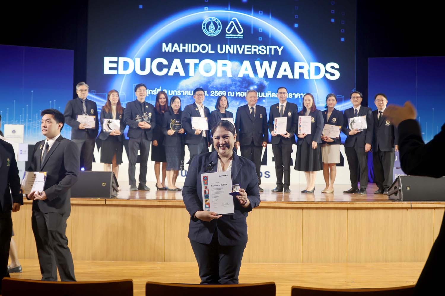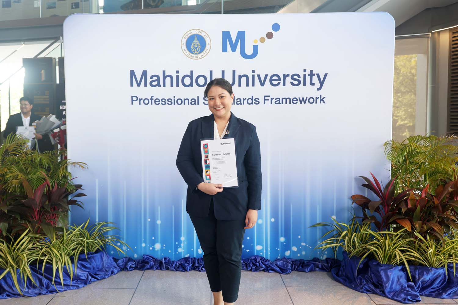 On January 9, 2026, Dr.Nuntamon Kutalad, a lecturer in the Master’s Program in Cultural Studies and Museum Studies, received a certificate of quality assurance in accordance with the Professional Standards Framework 2023 (PSF 2023) from Professor Piyamitr Sritara, M.D., President of Mahidol University, at the Mahidol University Educator Awards ceremony. The event was held at Mahidol Siddhakar Hall, Mahidol University, Salaya.