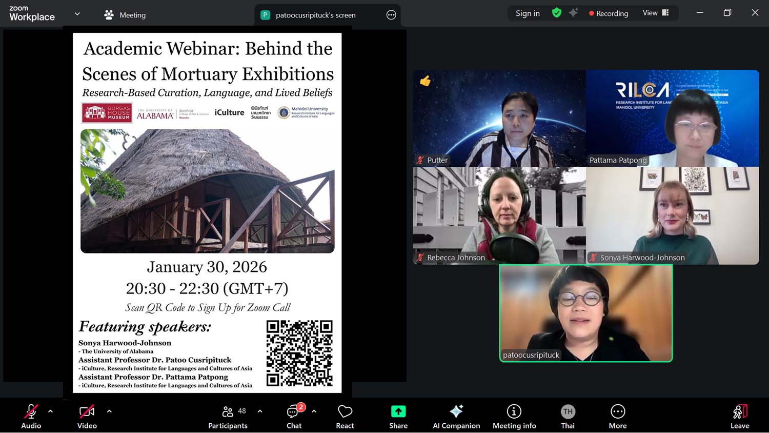 RILCA ผนึกกำลัง TICA–JICA ขับเคลื่อนความร่วมมือสุขภาพชายแดน ยกระดับระบบสาธารณสุขสู่เป้าหมายหลักประกันสุขภาพถ้วนหน้าในระดับภูมิภาค สถาบันวิจัยภาษาและวัฒนธรรมเอเชีย (RILCA) ร่วมกับ กรมความร่วมมือระหว่างประเทศ (Thailand… สถาบันวิจัยภาษาและวัฒนธรรมเอเชีย (RILCA) โดย พิพิธภัณฑ์มานุษยวิทยาวัฒนธรรม ร่วมกับ พิพิธภัณฑ์บ้านกอร์กาส และเครือพิพิธภัณฑ์มหาวิทยาลัยอลาบามา สหรัฐอเมริกา จัดเสวนาวิชาการออนไลน์ในหัวข้อ “Behind… วันที่ 28 มกราคม 2569 สถาบันวิจัยภาษาและวัฒนธรรมเอเชีย (RILCA) โดย หลักสูตรศิลปศาสตรมหาบัณฑิต สาขาพิพิธภัณฑศึกษา ได้จัดกิจกรรม… วันที่ 13 มกราคม 2569 สถาบันวิจัยภาษาและวัฒนธรรมเอเชีย มหาวิทยาลัยมหิดล โดย ศูนย์ศึกษาและฟื้นฟูภาษาและวัฒนธรรมในภาวะวิกฤต ร่วมกับ หลักสูตรพหุวัฒนธรรมศึกษา… วันที่ 6 มกราคม 2569 สถาบันวิจัยภาษาและวัฒนธรรมเอเชีย (RILCA) จัดกิจกรรม RILCA Talk” ในหัวข้อ… รองศาสตราจารย์ ดร.นันทิยา ดวงภุมเมศ ผู้อำนวยการสถาบันฯ เป็นประธานเปิดเสวนาวิชาการ เรื่อง นันดาลาล โบส: ผู้นำการเปลี่ยนแปลงศิลปะสมัยใหม่ของอินเดียสู่สากล ในวันที่… สถาบันวิจัยภาษาและวัฒนธรรมเอเชีย (RILCA) มหาวิทยาลัยมหิดล จัดพิธีปิดหลักสูตร “RILCA Brand Ambassador รุ่นที่ 1” โดยมี… ผู้ช่วยศาสตราจารย์ ดร.ณรงเดช พันธะพุมมี รองผู้อำนวยการฝ่ายวิจัยและวิเทศสัมพันธ์ กล่าวต้อนรับผู้เข้าร่วมกิจกรรม RILCA-NS Workshop ในหัวข้อ “Evaluation for… วันที่ 7 พฤศจิกายน 2568 สถาบันวิจัยภาษาและวัฒนธรรมเอเชีย มหาวิทยาลัยมหิดล จัดกิจกรรม RILCA Talk หัวข้อ… วันที่ 28 ตุลาคม 2568 สถาบันวิจัยภาษาและวัฒนธรรมเอเชีย (RILCA) จัดกิจกรรม RILCA Talk” ในหัวข้อ… วันนี้ (วันที 16 ตุลาคม 2568) สถาบันวิจัยภาษาและวัฒนธรรมเอเชีย (RILCA) โดย ศูนย์ศึกษาและฟื้นฟูภาษาและวัฒนธรรมในภาวะวิกฤต ร่วมกับ… สถาบันวิจัยภาษาและวัฒนธรรมเอเชีย (RILCA) ร่วมกับ คณะพยาบาลศาสตร์ มหาวิทยาลัยมหิดล จัดกิจกรรม 2nd RILCA-NS Talk” ในหัวข้อ…RILCA ผนึกกำลัง TICA–JICA ขับเคลื่อนความร่วมมือสุขภาพชายแดน